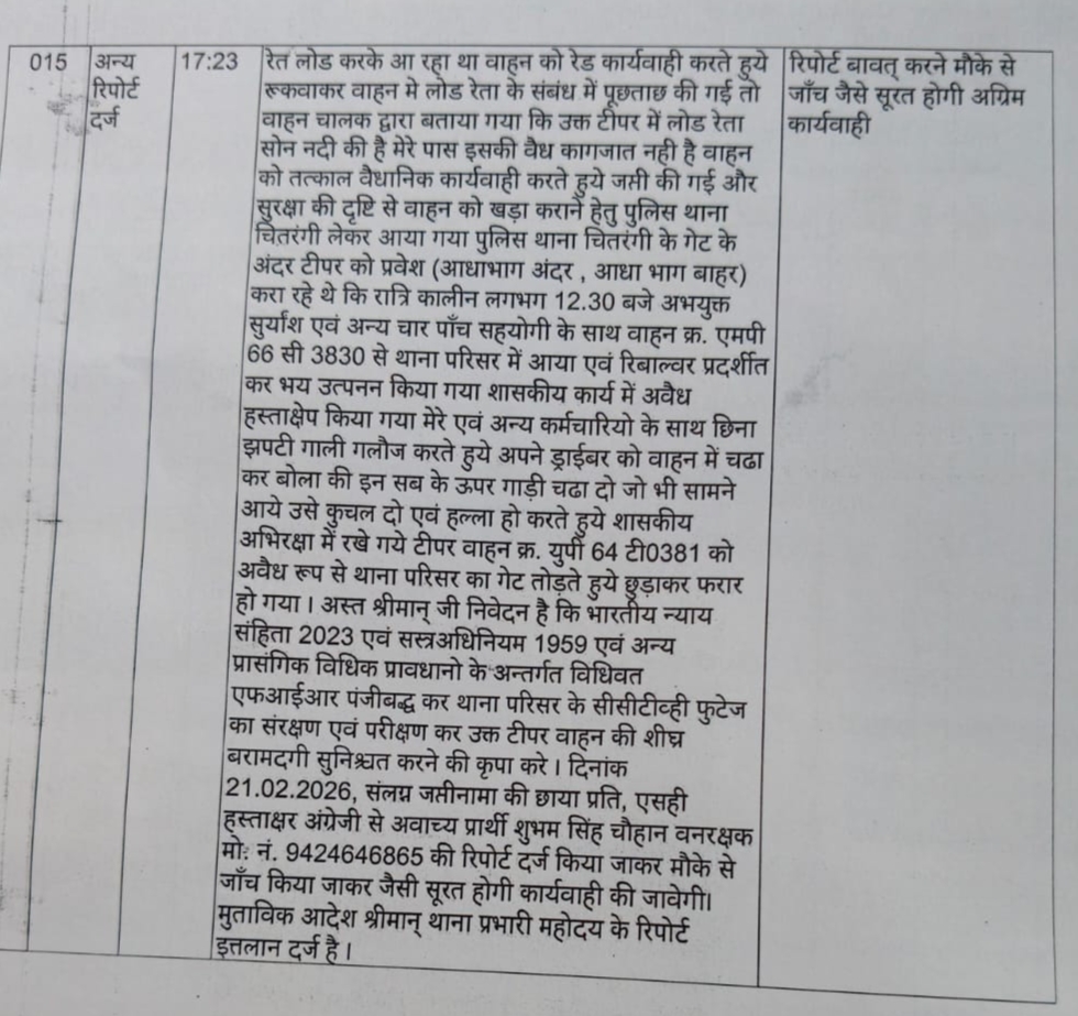 वन विभाग का आरोप, पुलिस सहयोग नहीं, माफिया रिवॉल्वर दिखाकर थाने से ले गए टिपर, 20 घंटे बाद मामला दर्ज